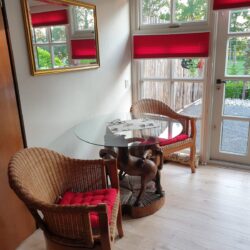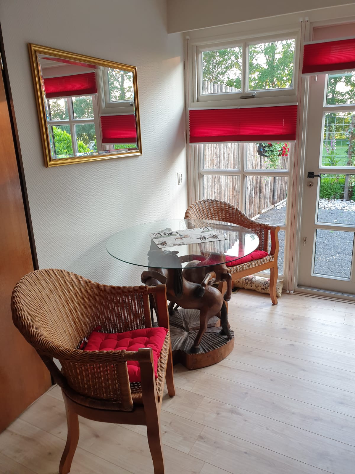 - buiten is een gezellig terrasje, waar je heerlijk kunt zitten en naar de paarden kunt kijken.